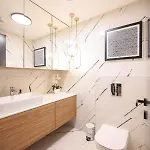 Featuring soundproof windows, the interior is equipped with a TV, as well as comforts like an ironing set and climate control. The property is also furnished with a sofa set and a writing table. Beds fitted with hypoallergenic pillows are at guests' disposal. Offering a walk-in shower, a separate toilet, and a bath, a bathroom comes with a dryer and towels.